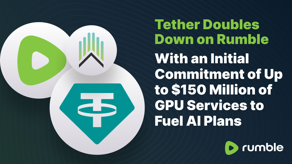 Tether Doubles Down on Rumble, with an Initial Commitment of up to $150 Million of GPU Services to Fuel AI Plans